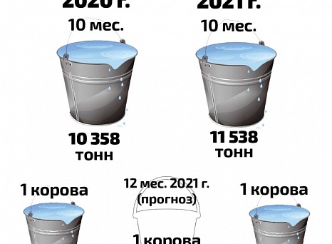 За 10 месяцев этого года от каждой коровы надоено по 7 692 кг молока, что превышает уровень прошлого года на 530 кг и на 400 кг выше среднекраевого показателя.