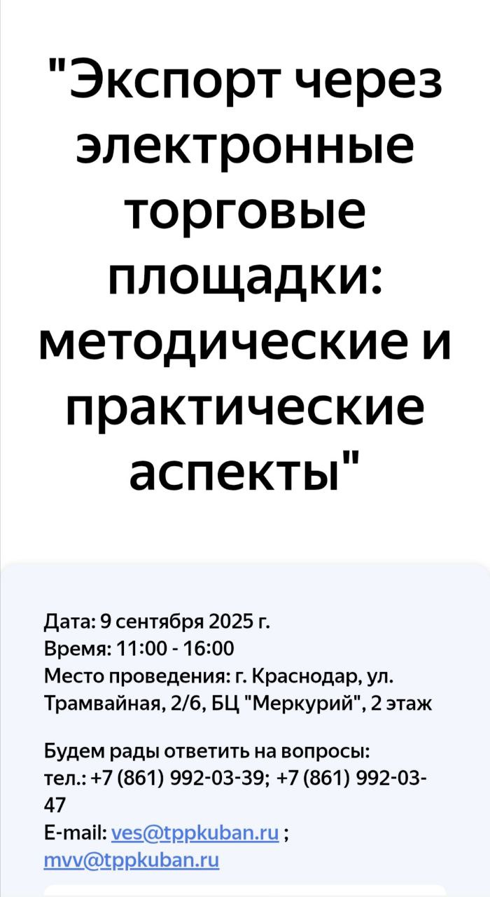 Уважаемые руководители предприятий и предприниматели! Центр поддержки экспорта приглашает вас принять участие в бесплатном оффлайн мероприятии 9 сентября, получить новые знания и задать интересующие вопросы. Ссылка на регистрацию.
